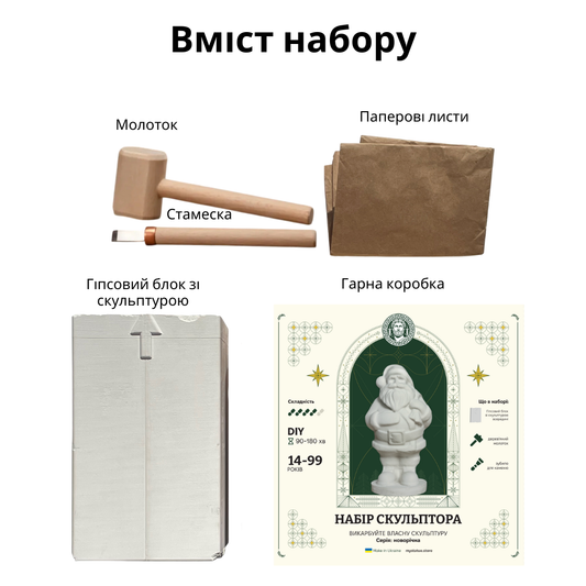До вас прийде блок із гіпсу та інструментами для роботи.
